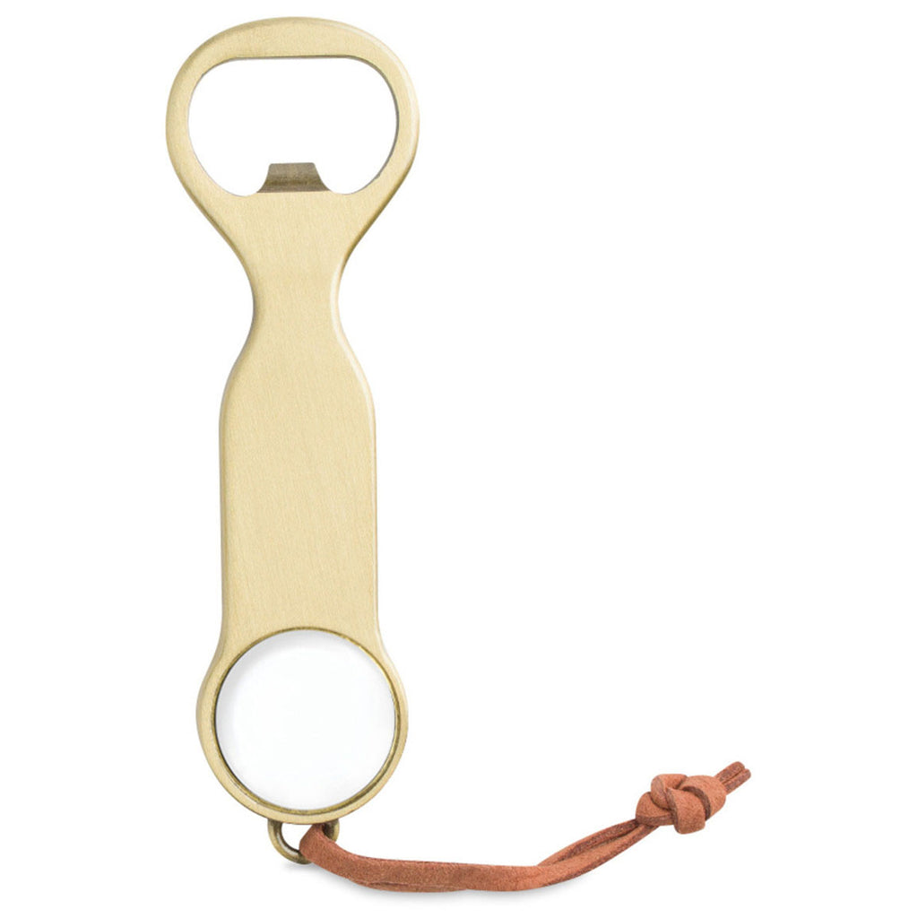 The Ahead Antique Brass Bottle Opener with a corporate logo is a fun and classy way to enjoy your favorite bottled drink. The rich antique brass finish with a suede cord and affixed ball marker is ideal for member guest giveaways or tournament swag. Keep this bottle opener in your pocket, golf bag, or on the cart to use as needed.The minimum order for this product is 30 pieces.