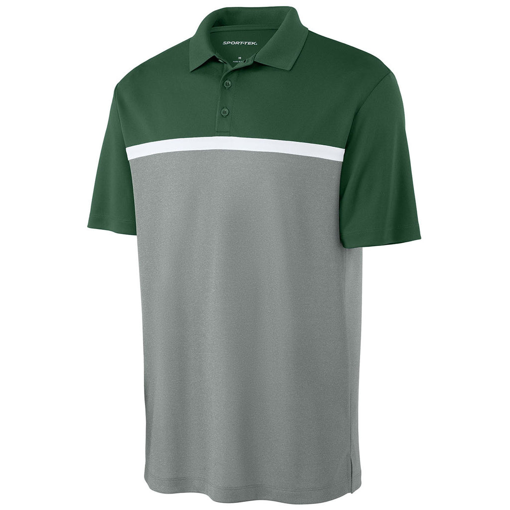 Sport-Tek Men's Forest Green/Grey Concrete Heather/White UV Micropique Colorblock Polo