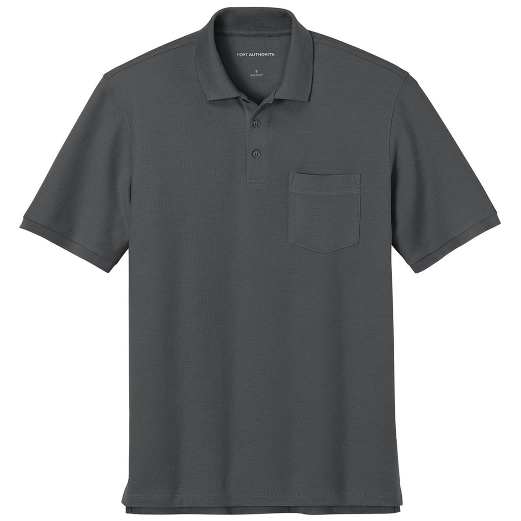Designed with a tall fit, the Port Authority Men's Storm Grey Tall Wearever Signature Pique Pocket Polo ensures comfort and style for every wearer. Its breathable pique fabric offers structure and polish, making it suitable for business or casual settings. With custom embroidery, it becomes an essential piece of corporate apparel that balances practicality with professionalism.Highlights