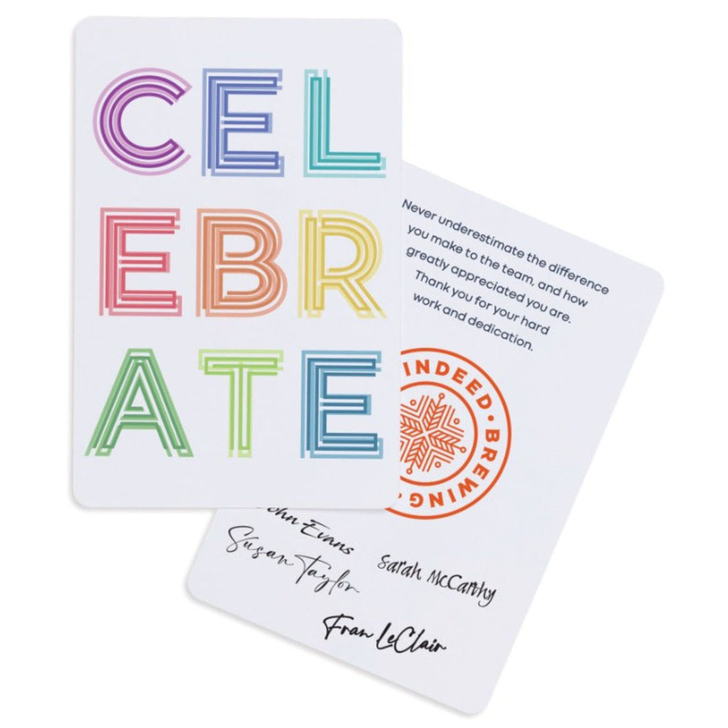 Enjoy a custom logo on the Gemline White Joyful Celebration Greeting Card to send a cheerful message for any occasion. From corporate events to personal celebrations, this card conveys happiness and gratitude. It's an excellent way to enhance your brand with a personalized, positive touch.The minimum order for this product is 6 pieces.