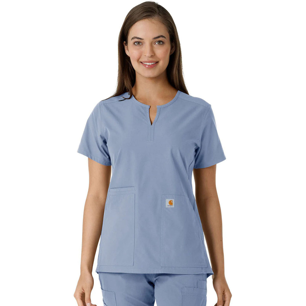 Carhartt Women's Ceil Blue Notch Neck Tunic Knit Panel Scrub Top