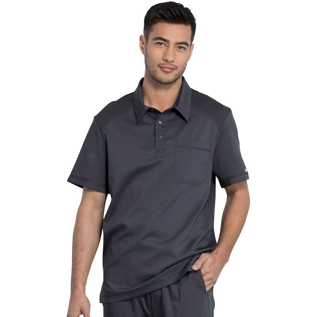 Enjoy an updated classic with a corporate Cherokee Men's Pewter Polo Shirt. This sleek, modern, sporty collared polo features a breathable mesh at the shoulders for added comfort and mobility. A single chest pocket adds convenience whether wearing this with scrub bottoms, on the golf course, or chilling with friends.