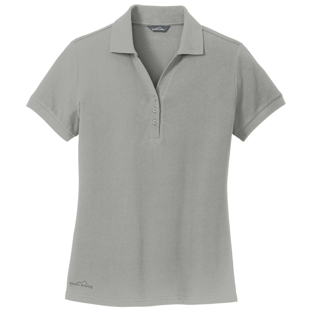 Between a 100% cotton pique fabric construction, a flat-knit collar, side vents, and solid, durable Eddie Bauer buttons, you know that this Eddie Bauer Women's Chrome Cotton Pique Polo isn't just here to sit in your closet and never be used. It's ready for adventure. It can handle the weather, the washer/dryer, and, perhaps more importantly, the hustle and bustle of everyday life. And since it has a contoured fit and plenty of style, that means you can go about your business looking as stylish as you'd like. Add your custom logo to this pique polo via our embroidery process. Ready for everyday adventures, this durable polo resists fading, shrinking and pilling. The slight basket weave texture of the pique knit enhances the natural softness of the cotton.