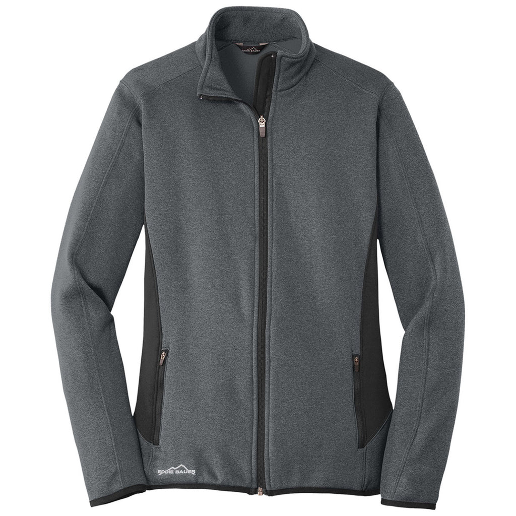 When you need to move around, whether it's outdoors decorating for the holidays or indoors competing in a league game, you want a fleece jacket designed to maximize movement. The Eddie Bauer Women's Dark Charcoal Heather Full-Zip Heather Stretch Fleece Jacket gives you the movement flexibility to complete home improvement projects and compete in your favorite sport. Highly breathable brushed back fleece quickly removes the sweat that builds up on your skin. Take advantage of the imprint area on the jacket to attach your company logo. Enjoy the convenience of storing personal possessions in one of the rust resistant front zippered pockets.