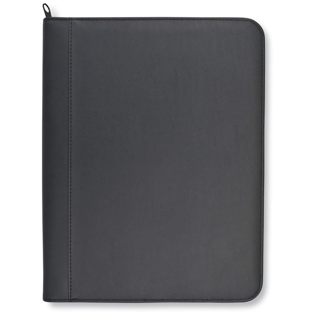Gemline Black Morgan Executive Zippered Padfolio with a corporate logo creates a sleek, professional look. This padfolio features a zippered closure, internal pockets, and a writing pad, making it perfect for corporate meetings, conferences or as a high-end gift for executive clients and employees.