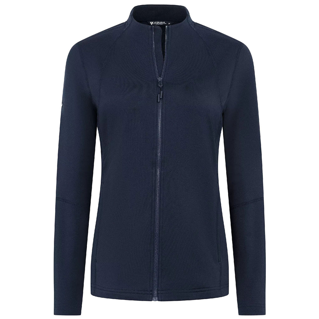 The Levelwear Women's Navy Mesa Full Zip provides a flattering fit and custom-ready details perfect for corporate layering. Its stretch fleece construction and contoured design offer warmth without bulk, making it ideal for commutes, conferences, or casual Fridays. Add your logo for a branded style that moves effortlessly between work and life.This product cannot ship outside of the United States.