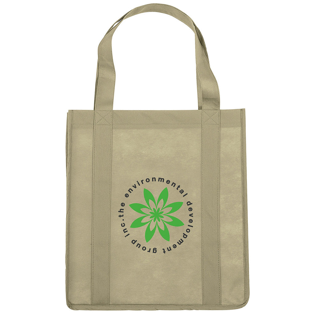 Shop with ease using a custom Good Value Tan Grocery Tote. Whether you own a store, sell a specific product, or just like to show off your style, this tote is perfect for staying green and keeping your purchases organized. The reusable tote is ideal for quick trips to the market after work or school. Easily resell to encourage use in your store.Please note that there may be a delay in processing your 48-Hour order if artwork revisions are required. Orders requiring revisions or additional details will no longer qualify for 48-Hour production. The 48-Hour lead time is for production only, not delivery. You will select your shipping speed at checkout. 48-Hour orders are not eligible for cancellation. All sales are final. Learn more on our FAQ Page.