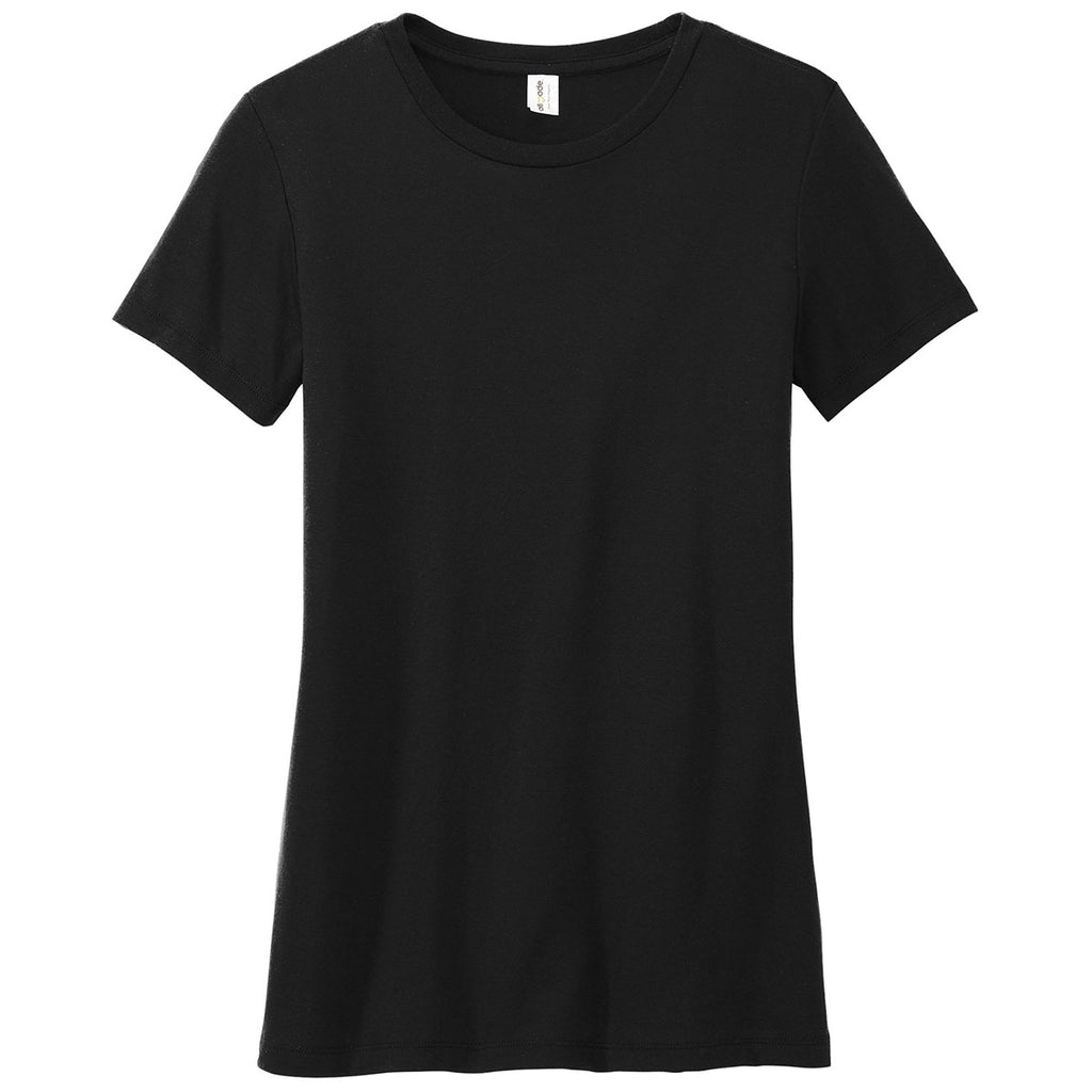 Design screen print for the Allmade Women's Deep Black Tri-Blend Tee for a sustainable clothing option that is comfortable and good for the environment. Add a company logo to use as employee apparel that also doubles as recycled apparel for the more conscientious employees. Made partially of recycled materials that are the equivalent of up to six plastic water bottles, this rib neck women's tee is gorgeous and durable. Add a custom logo to support a local team or give as a custom gift that can be worn as often as desired.