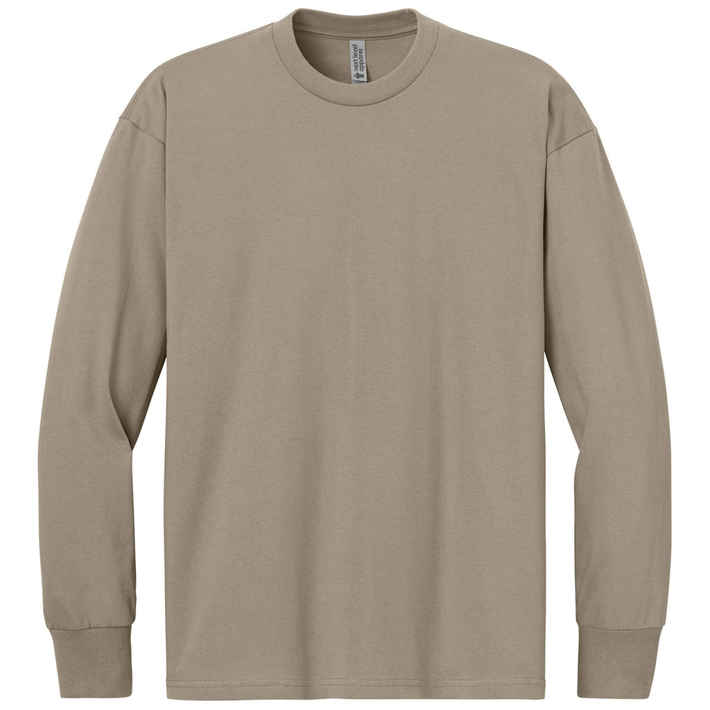 The Next Level Men's Tan Heavyweight Long Sleeve Tee delivers durable comfort and custom branding opportunities for corporate events. Made with heavyweight cotton, it offers long-lasting wear while providing a clean backdrop for logos. Its versatile design works well for team apparel, giveaways, or resale. A simple yet effective piece, it balances casual style with professional visibility.Highlights