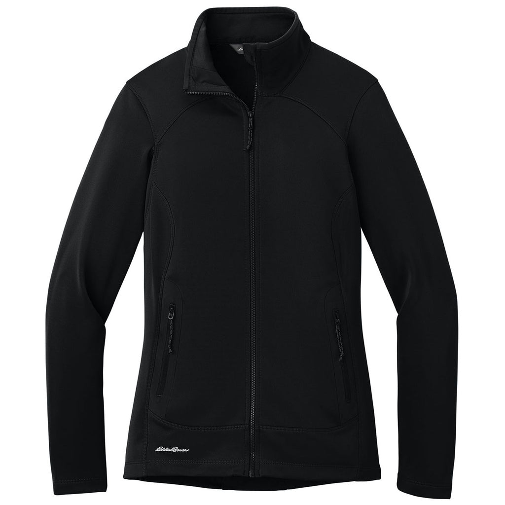 A perfect description of corporate layering is whenever you put on the logoed Eddie Bauer Women's Black Highpoint Fleece Jacket. Sophisticated enough to wear at corporate events, the stretchable twill fleece jacket includes tonal welding details located on the pockets to create optimal visual appeal. Rip and tear resistant polyester ensures you enjoy wearing the elegantly designed fleece jacket for years to come. The attractive feminine collar separates the jacket from other types of corporate apparel. Attach your company logo on the large imprint area and watch recognition for your brand soar. You can feel confident that your employees will wear this jacket at the office and after hours. The classic design will ensure it stays an employee favorite for years to come.