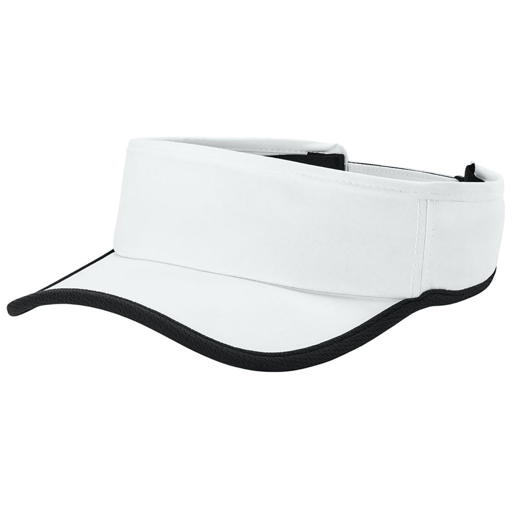 Sport-Tek White/Black Repeat Visor with a corporate image, features a bold design with breathable, lightweight fabric. Its adjustable band ensures a snug, comfortable fit, making it ideal for sports, outdoor events, or casual outings. Offering UV protection and style, this visor is perfect for those looking to stay cool and shaded while maintaining an athletic edge.