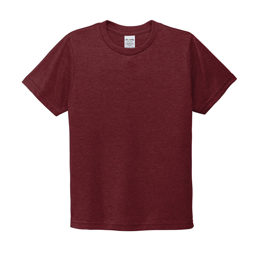 Design a screen print for the Allmade Youth Vino Red Tri-Blend Tee to create a unique look for your team or organization. The simple recycled apparel is not only great to wear, but good for the environment. Made of sustainable materials that are the equivalent to up to six recycled plastic water bottles. This super soft tee is perfect for youth as they play their hardest each day. Add a custom logo to add to your sustainable clothing line in shops or simply add to your own wardrobe.