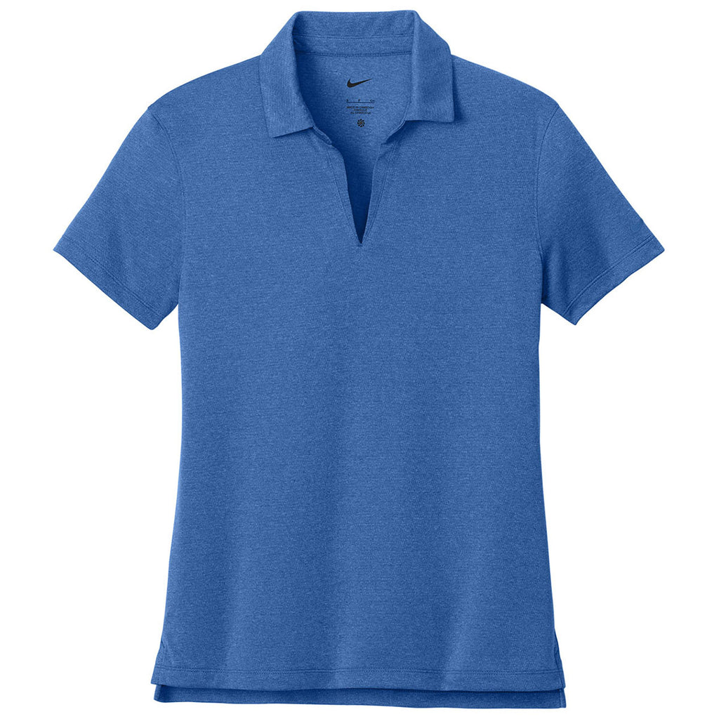Enjoy a custom logo on the Nike Women's Game Royal Heather Dri-FIT Smooth Heather Polo, which offers a polished look with performance benefits. Designed with moisture-wicking Dri-FIT fabric, this polo keeps you cool and dry throughout your day. Its soft, heathered texture adds a touch of style, making it perfect for active days or professional settings that require both comfort and sophistication.This product cannot ship outside of the United States.