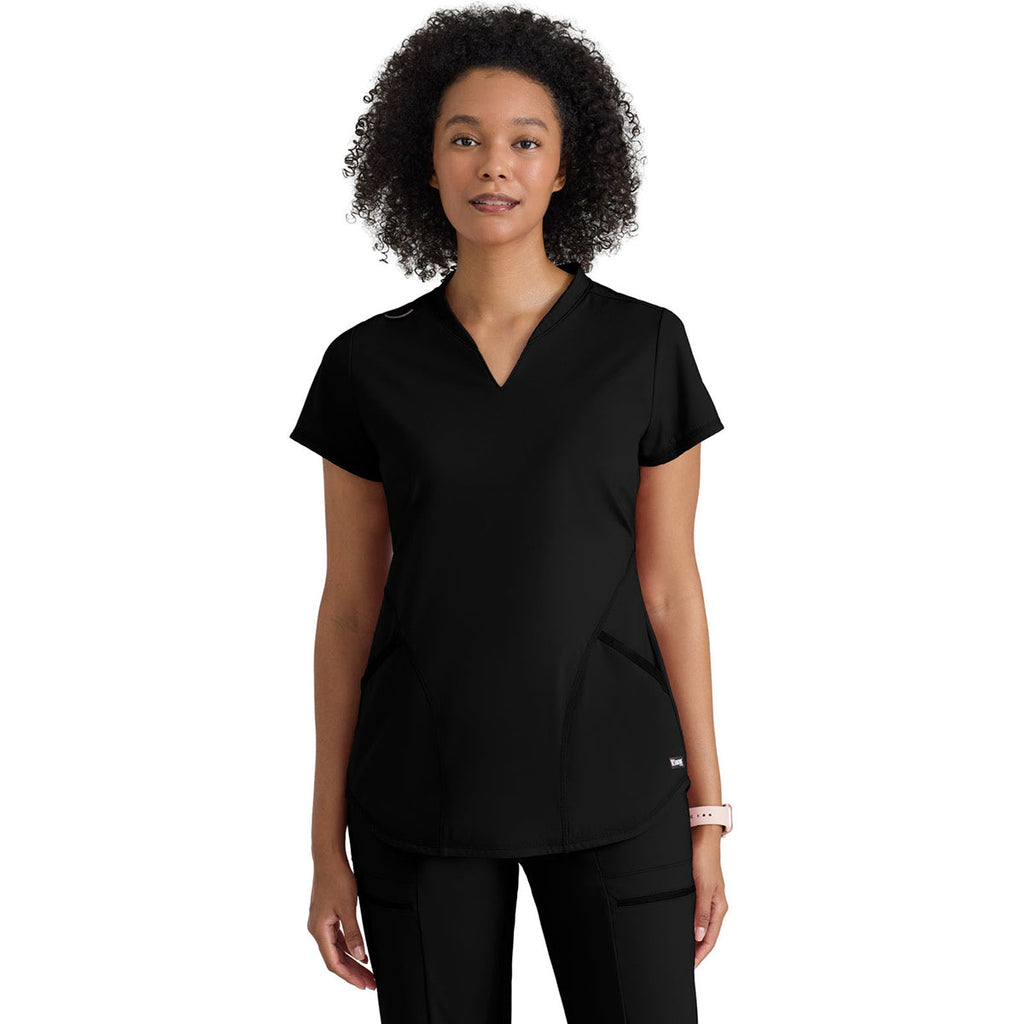 Grey's Anatomy Women's Black Two Pocket V-Neck Define Top