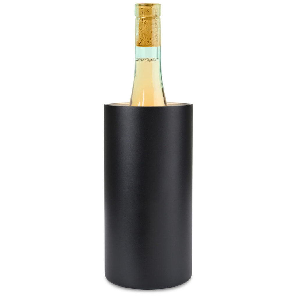 Choose a corporate logo for the Aviana Black Rowan Recycled Wine Chiller to stock your bar, hotel, AirBnB, or event venue. This recycled stainless steel wine chiller is sweatproof and ready for a night of fun and entertainment. Choose a custom date for a specific event and allow guests to take the chiller as a gift.