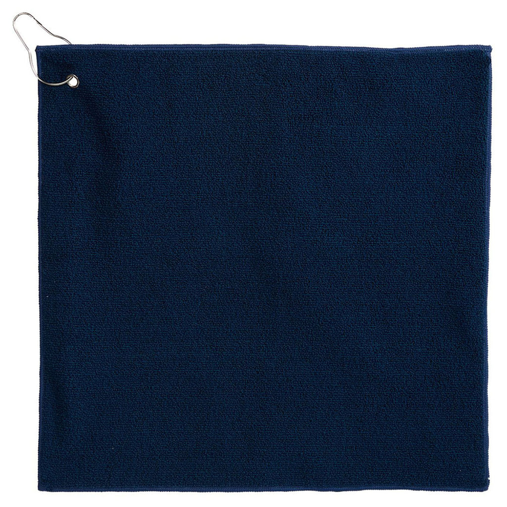The custom Leed's Navy 15" x 15" RPET 300g Terry Polyester Towel is compact and convenient for all the golfers in your life. The easy-to-store, soft terry polyester towel provides gentle cleaning for your clubs, wiping sweat, or anything you need while on the course. The metal grommet and hook mean you can hook this to your bag and be on your way.