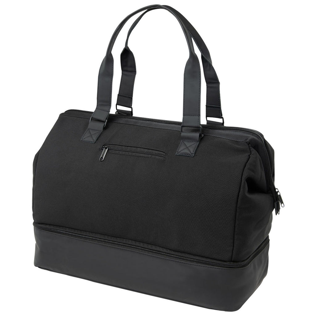 The corporate Hit Black The Weekender Travel Bag With Drop Bottom is built for travelers who need space and organization. Featuring a large main compartment and a separate drop-bottom section, it keeps belongings neatly arranged. Made with durable materials and a sleek design, it's ideal for business trips, weekend getaways, and corporate gifting, offering both style and practicality.