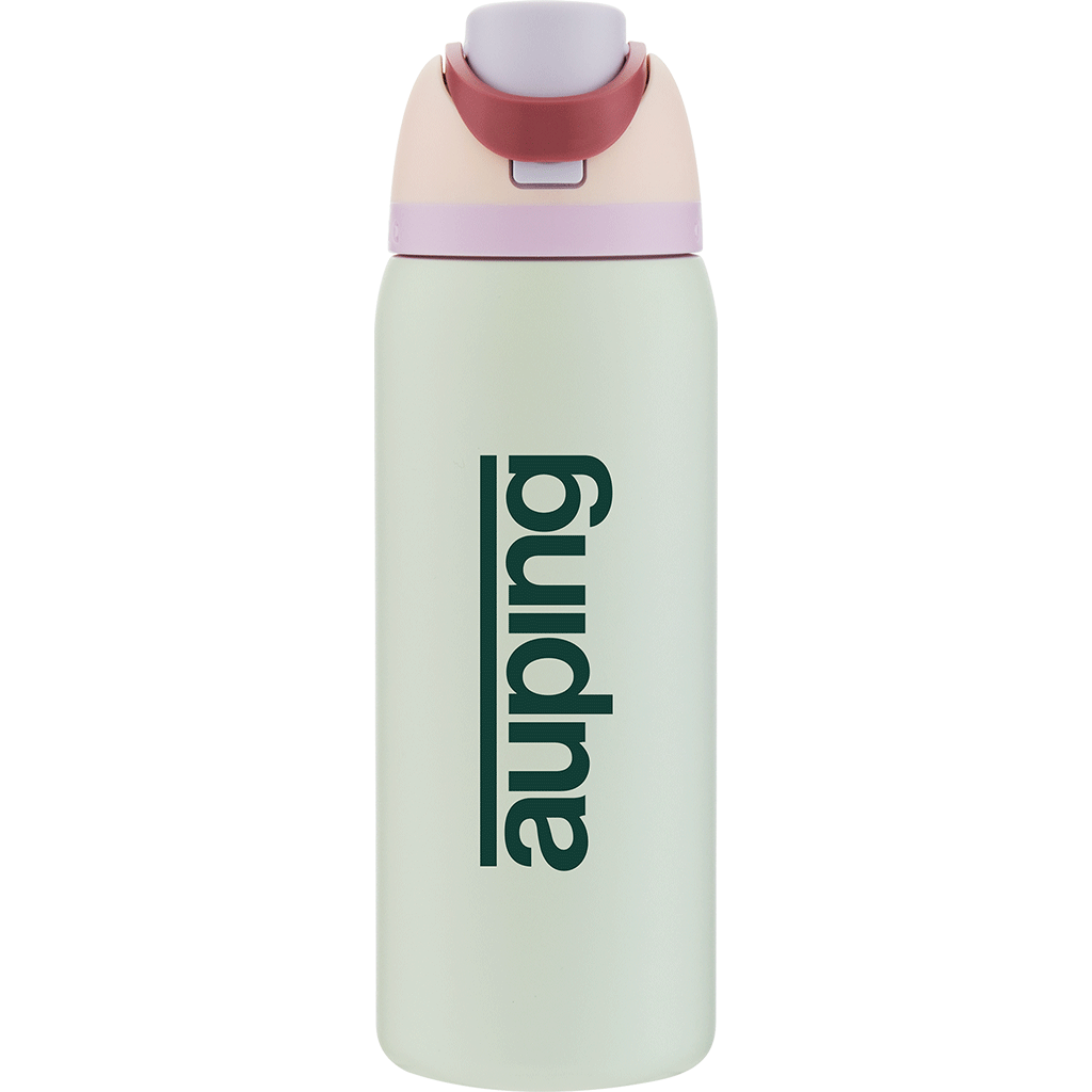 Tackle your thirst with a custom Owala Coastal Mist FreeSip 32 Oz Bottle. It features two convenient ways to drink; sipping through the straw or the wide-mouth opening. Insulated stainless steel will keep your drink cold all day long. The ideal water bottle that keeps you hydrated from the time you step out of your home to when you step back. Create a truly custom bottle and add a logo or art directly onto the bottle.