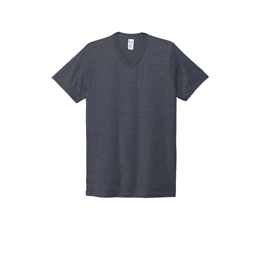 Everyone can enjoy a custom Allmade Unisex Rebel Blue Tri-Blend V-Neck Tee. This simple tee is a must have when it comes to logoed apparel. This extremely soft sustainable tee that is made of 4.2 ounce 50% Repreve polyester from recycled plastic bottles, organic US grown cotton and Tencel Modal singles for an eco-friendly look that will stand the test of time. Add a custom screen print in your design to use as employee apparel that is part of a sustainable clothing line or simply to show how green you can be with recycled apparel.