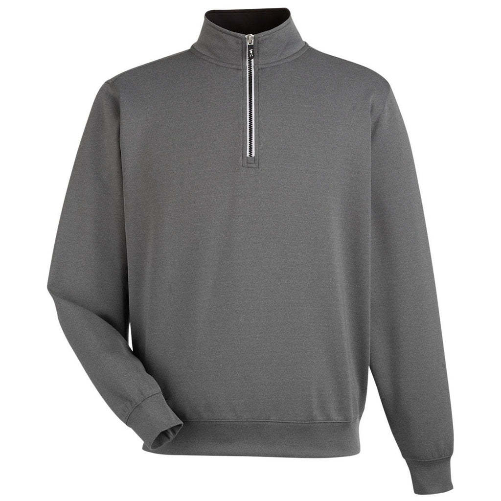 Fairway & Greene Men's Dark Shadow Grey Heather Caves Quarter-Zip Tech Pullover with a custom logo is made of a polyester and spandex blend for some added stretch whether you are playing a quick round of golf, hanging out with friends, or relaxing at home. The UPF 50+ sun protection adds to the appeal for outdoor wear. Great as a gift or promotional item.Highlights