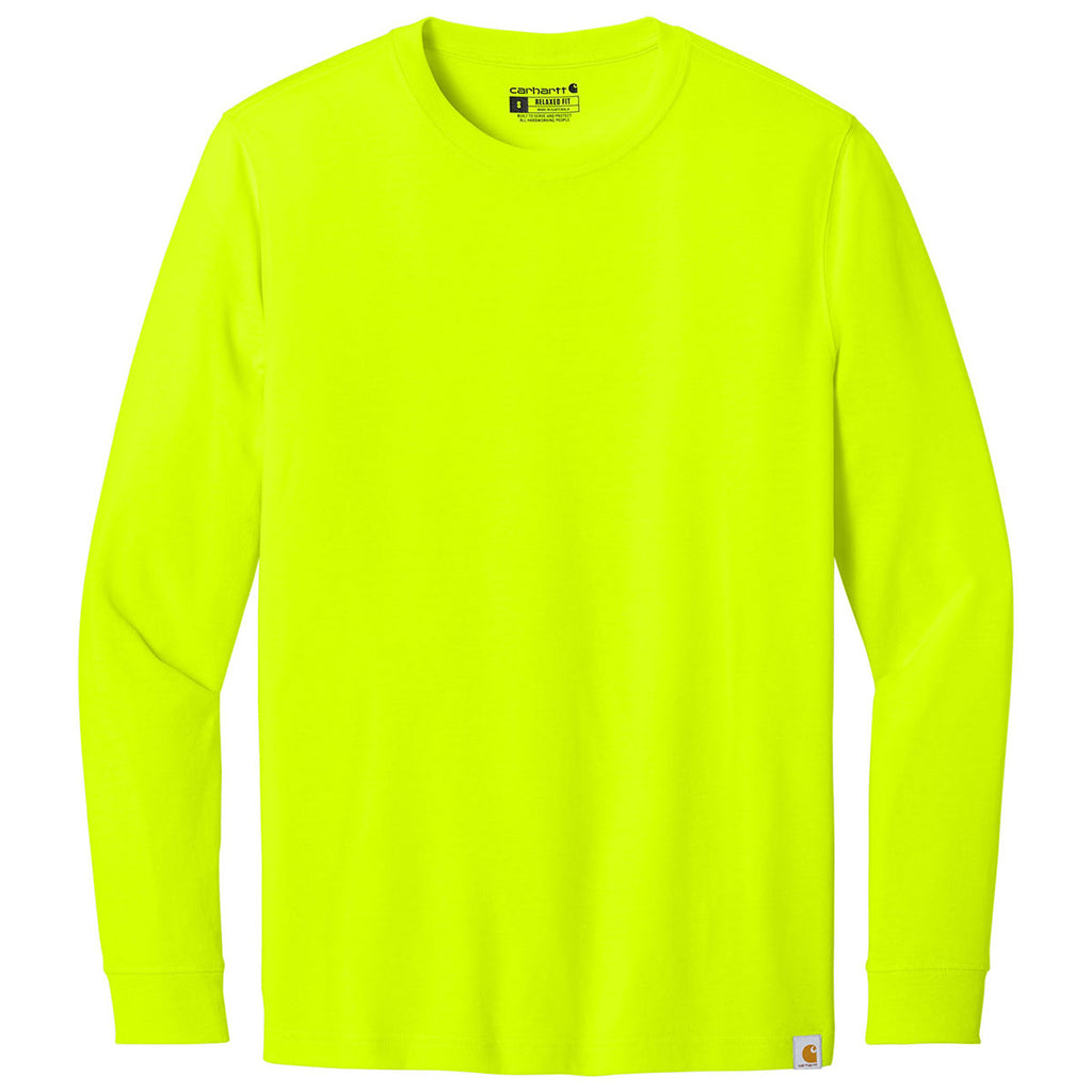 The custom Carhartt Men's Brite Lime Long Sleeve T-Shirt delivers durability and comfort for those who need dependable workwear. Made from sturdy cotton, it's built to withstand tough conditions, while the long sleeves provide extra coverage. Whether working outdoors or tackling DIY projects, this shirt offers reliability and comfort throughout your day.This product can only ship within the United States and Canada.