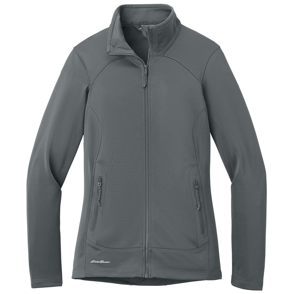 A perfect description of corporate layering is whenever you put on the logoed Eddie Bauer Women's Metal Grey Highpoint Fleece Jacket. Sophisticated enough to wear at corporate events, the stretchable twill fleece jacket includes tonal welding details located on the pockets to create optimal visual appeal. Rip and tear resistant polyester ensures you enjoy wearing the elegantly designed fleece jacket for years to come. The attractive feminine collar separates the jacket from other types of corporate apparel. Attach your company logo on the large imprint area and watch recognition for your brand soar. You can feel confident that your employees will wear this jacket at the office and after hours. The classic design will ensure it stays an employee favorite for years to come.