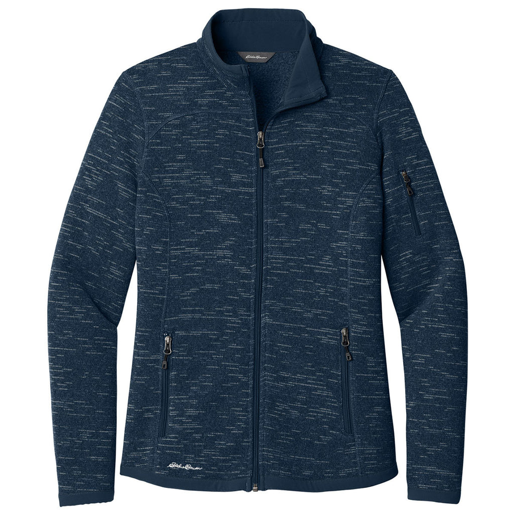 A custom outdoorsy look can be created with the Eddie Bauer Women's River Blue Heather Sweater Fleece Full Zip. The easy to put on and get off full zip offers serious comfort in 100% polyester. Create a dressy casual look with the cadet collar, open cuffs, open hem, and exposed coil zippers. Add your corporate embroidery for a look that works as a company uniform or as the employee gift that everyone will love. Perfect as end of the year gifts or prizes at a corporate event, these full zip sweaters have the thing every woman wants, pockets. Choose this lightweight sweater to customize and meet your needs.