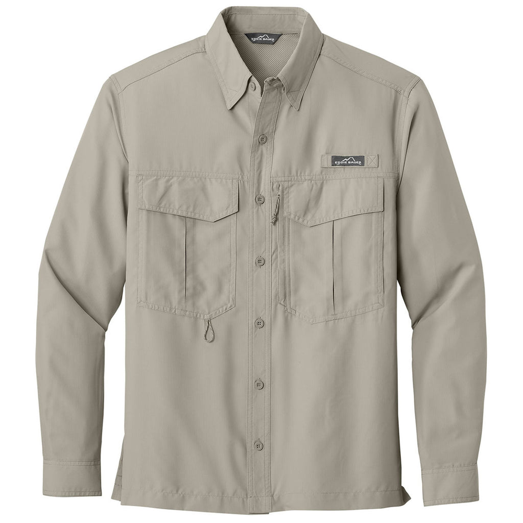 Eddie Bauer Men's Driftwood Beige L/S Performance Fishing Shirt