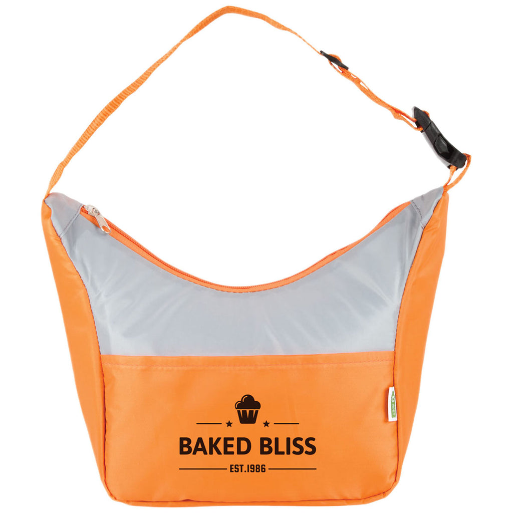 Keep your logo in sight with the corporate Logomark Orange Roni 6-Can RPET Lunch Cooler, made from recycled plastic bottles. This eco-forward cooler features a zippered main compartment, shoulder strap, and side mesh pocket. It's an excellent option for schools, job sites, or green initiatives that want a practical, everyday product with visible sustainability.The minimum order for this product is 100 pieces.
