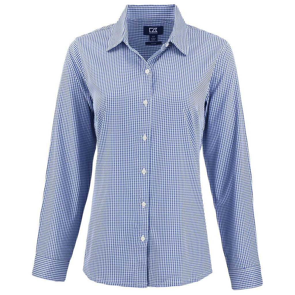 Cutter & Buck Women's Tour Blue/White Skyline Epic Confidence Recycled Gingham Long Sleeve Dress Shirt