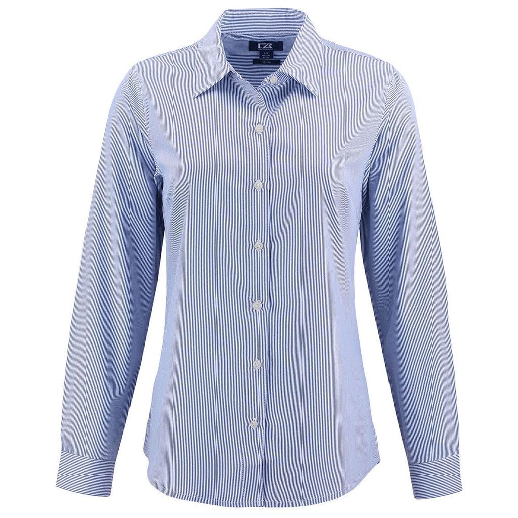 Cutter & Buck Women's Tour Blue/White Skyline Epic Confidence Recycled Pinstripe Long Sleeve Dress Shirt