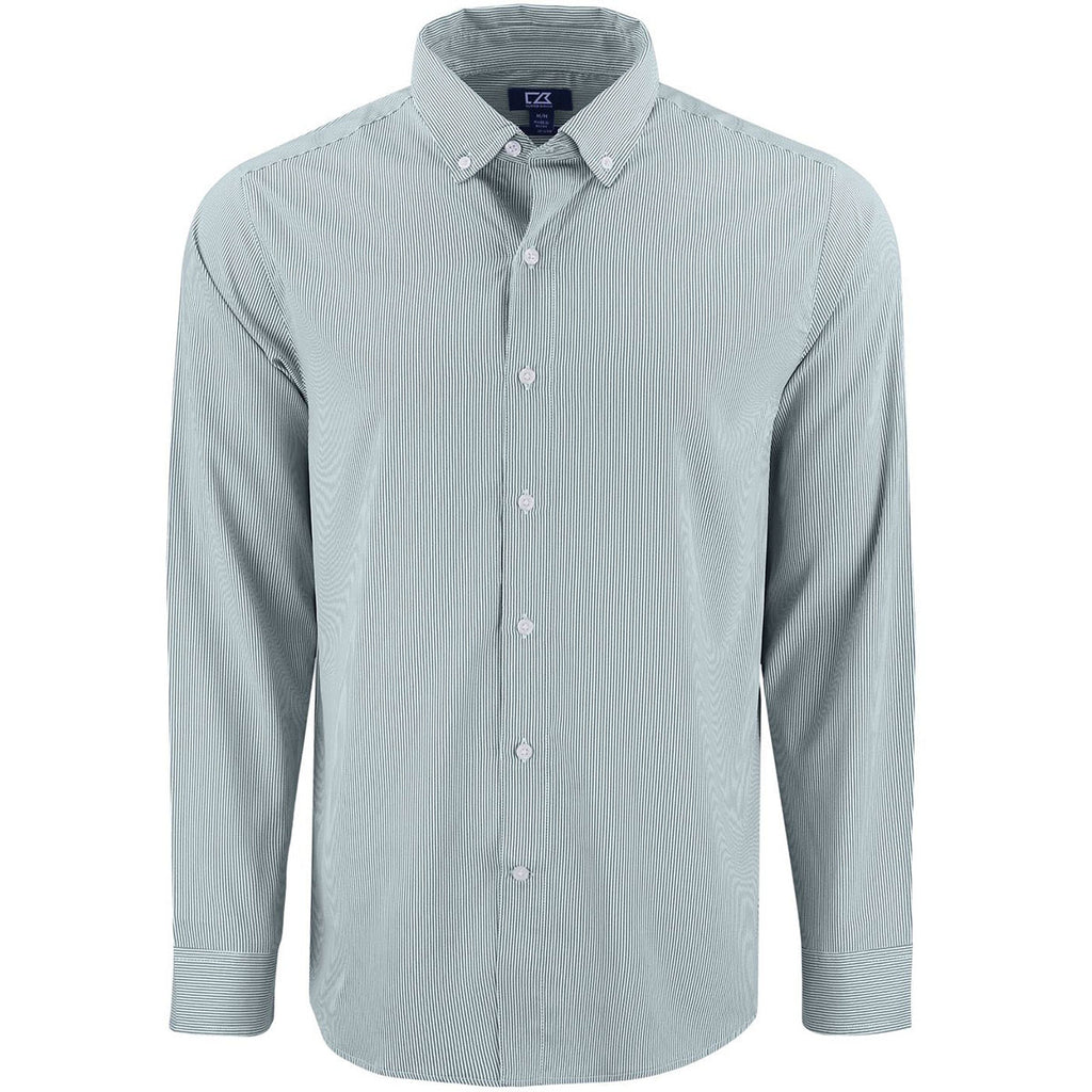 Cutter & Buck Men's Hunter/White Skyline Epic Confidence Recycled Pinstripe Long Sleeve Dress Shirt