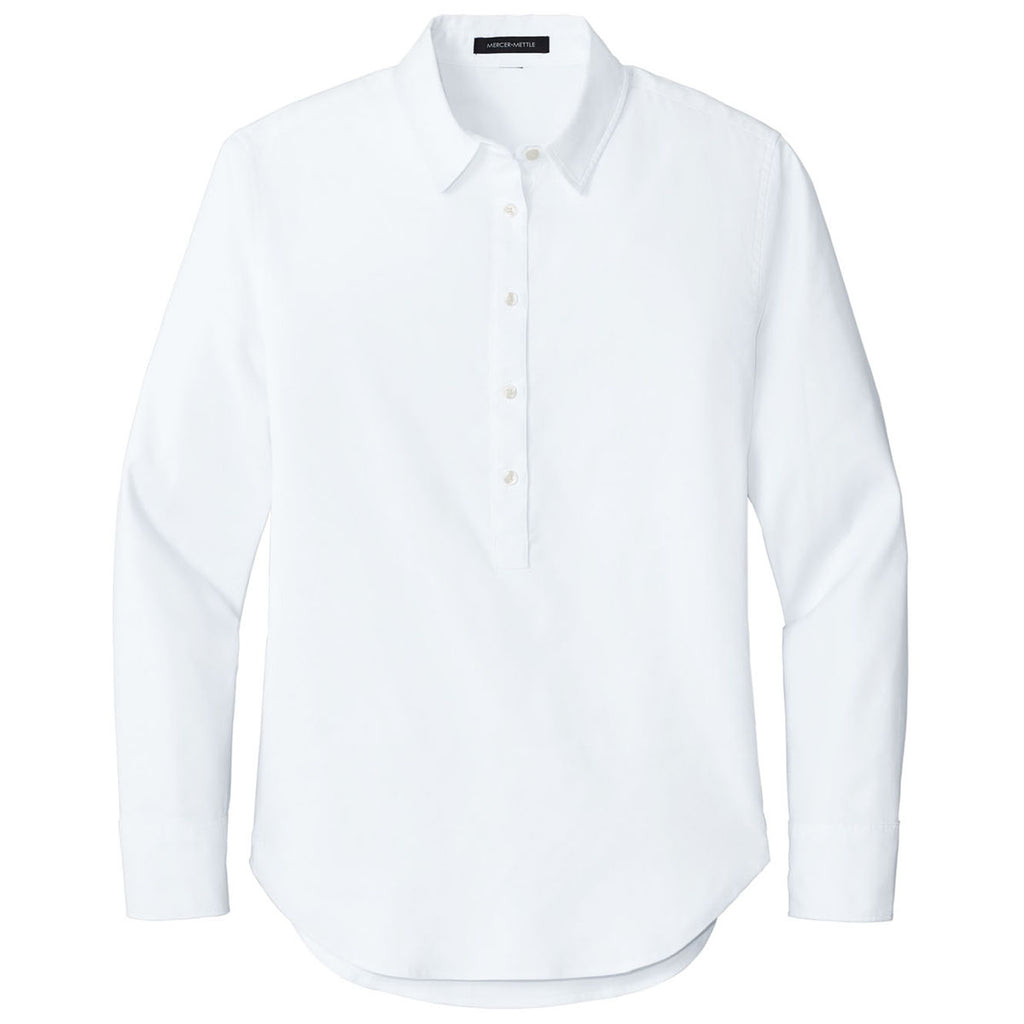 A custom Mercer+Mettle Women's White Long Sleeve Modern Oxford Shirt offers a sharp, professional look with its tailored fit and smooth, easy-care fabric. Ideal for business settings or smart-casual events, this shirt provides both style and comfort. Its refined design ensures you stay polished throughout the day, whether in the office or at an evening gathering.