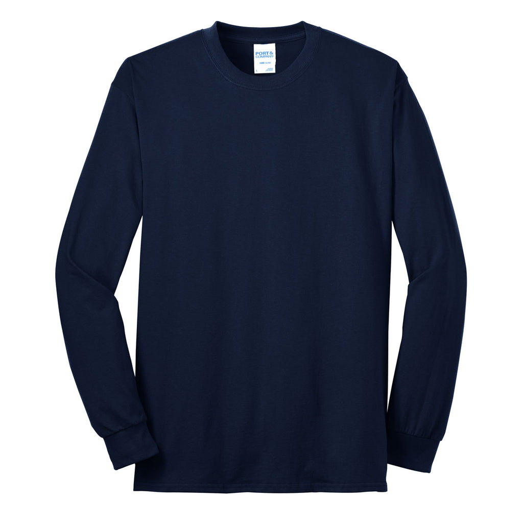 You can layer it in the occasionally chilly weather, and then wear it as stand-alone in warmer months. A shirt that keeps on giving. Comfortable long sleeves and breathable all-cotton fabric make this Port & Company Men's Navy Tall Long Sleeve Core Blend Tee a flawless cold weather find. Emblazon this long sleeve, with your company's logo or message to gift it to your clients as a corporate give-away or a summer uniform staple for your employees. Either way, it will help your company or organization stand out and create an impactful brand identity.Highlights