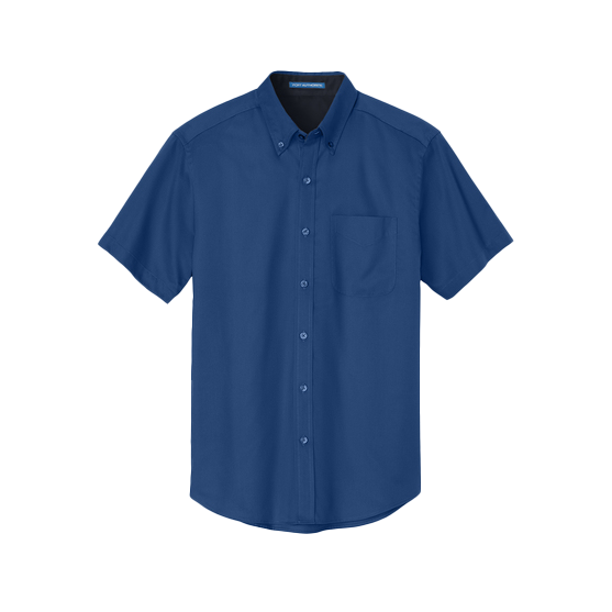 A short-sleeve button-down made for the workday but professional enough for upscale events? No, you're not dreaming: that's actually an apt description for Port Authority Men's Royal/Classic Navy Short Sleeve Easy Care Shirt. The 4.5-ounce, 55/45 cotton/poly blend fabric is perfect for breathing, while the button-down collar ensures that your employees will always be event-appropriate. The patch pocket scores points for function as well as dressiness, and the dyed-to-match buttons are as subtle as they are necessary. And if you ask us, a good work shirt should be understated, allowing your own corporate embroidery and custom business logo to earn the attention.