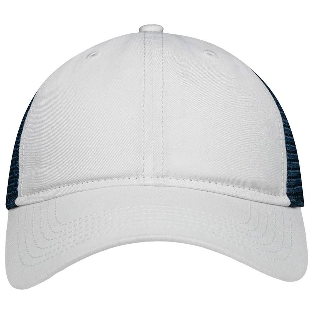 Add a casual edge to your custom gear with the Sportsman White/Navy Mesh Dad Hat Fit. Its unstructured design and breathable mesh back offer day-long comfort. Ideal for relaxed branding or event giveaways, this hat combines modern style with practical function. The pre-curved visor and adjustable closure make it a versatile, go-to choice for year-round wear.Highlights
