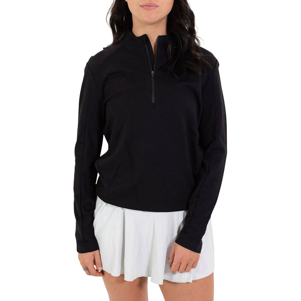 Add embroidery for the TRUE Women's Black All Day Quarter Zip to create a custom look that you can enjoy or share. The breathable pullover with UPF protection, 4-way stretch, and anti-wrinkle properties is ideal for pairing with a tennis skirt, shorts, slacks, or other athletic wear to make sure you are protected without being inhibited.